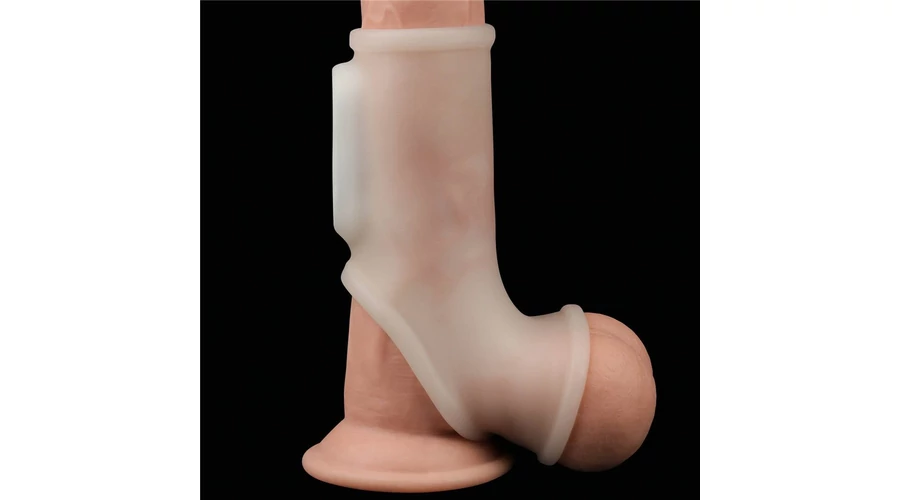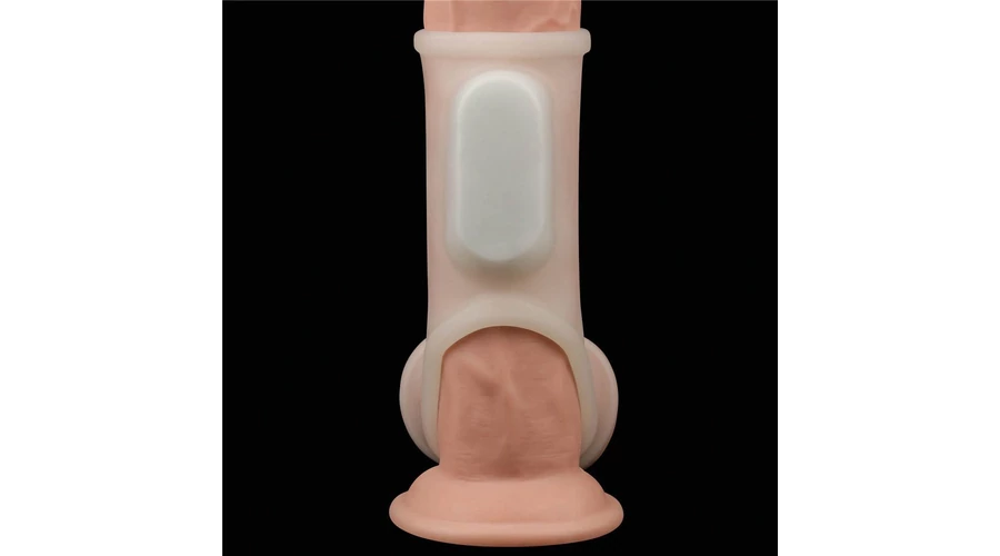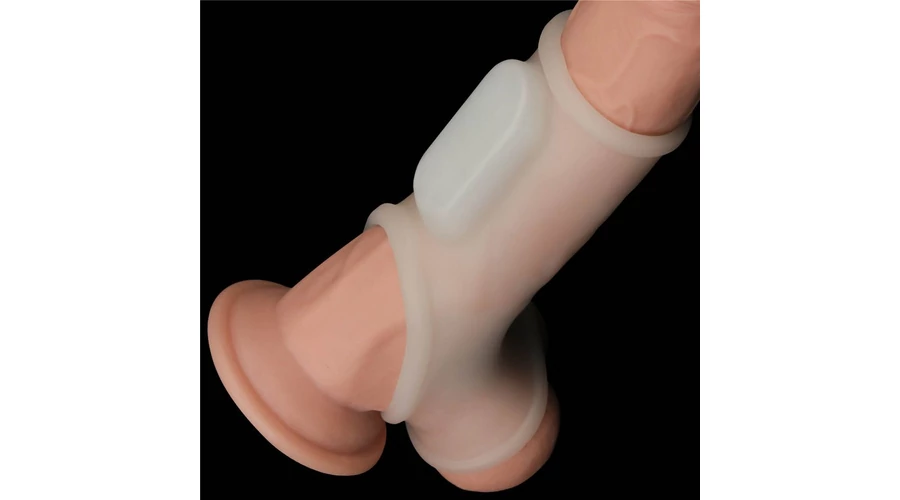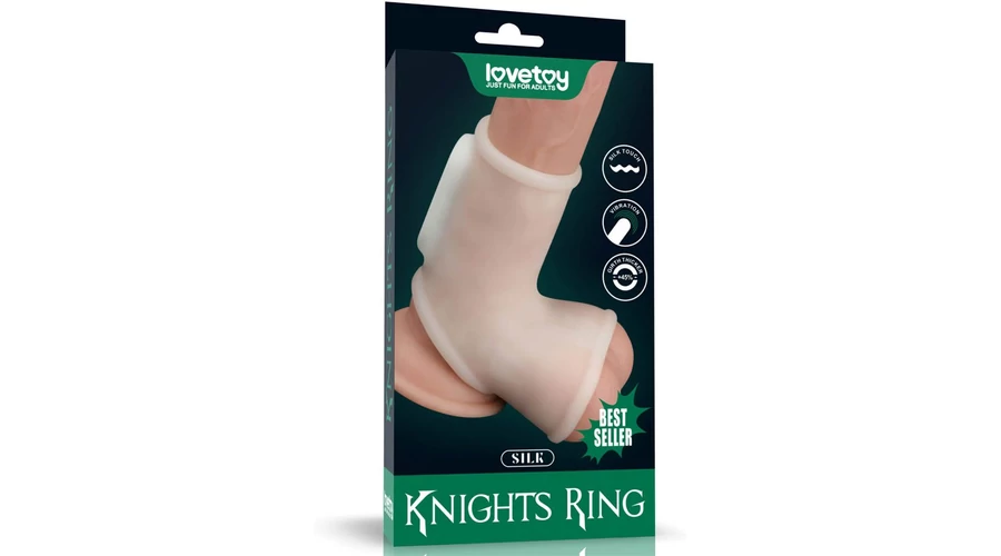 Vibrating Silk Knights Ring with Scrotum Sleeve (White) I vibrátoros péniszgyűrű