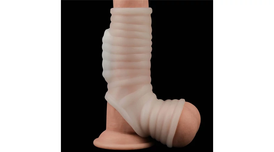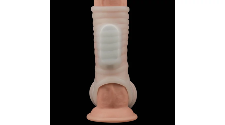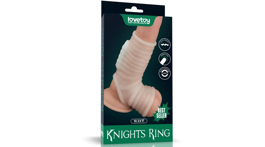 Vibrating Silk Knights Ring with Scrotum Sleeve (White) III vibrátoros pénisz és heregyűrű