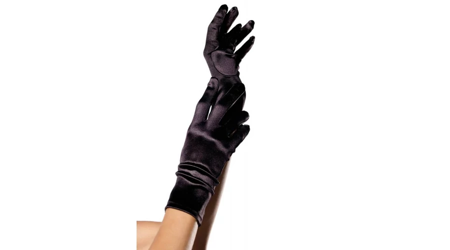 Wrist Length fekete szatén kesztyű