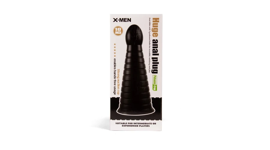 X-MEN 10 inch Huge Anal Plug Black fenékdugó tapadókoronggal