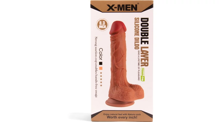 X-MEN 8.3 inch Double Layer Silicone Brown dildó herékkel