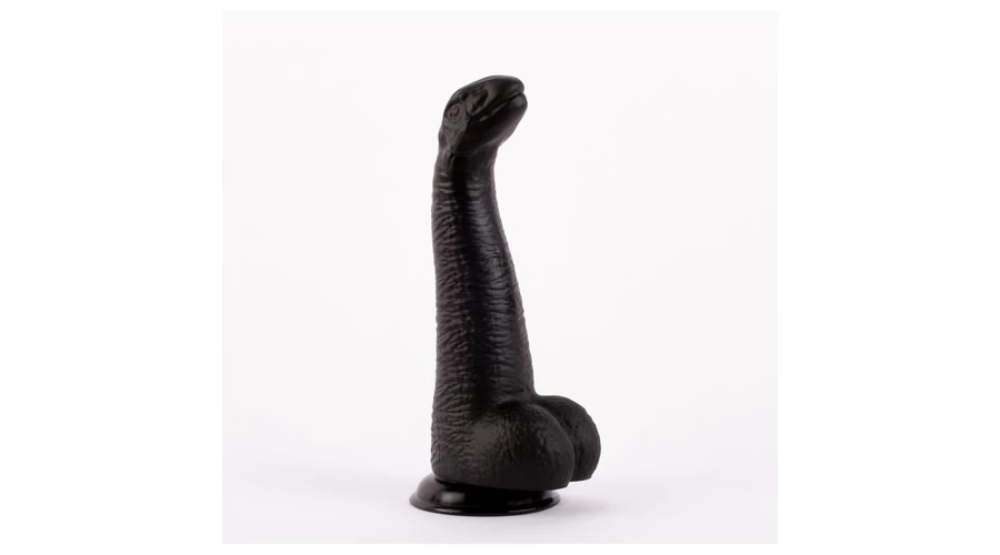 Kiváló minőségű, testszövethez hasonló, bőrszerű tapintású anyagból készült, motor nélküli, stimuláló felülettel ellátott, herékkel kiegészített, egyedi, dinoszaurusz formájú, hajlítható dildó. Tapadókorongja segítségével sík felületre rögzíthető.