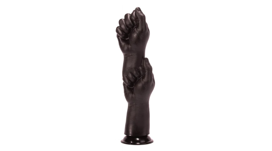 Egymásba illeszett, két emberi öklöt formázó, kiváló minőségű anyagból készített, kissé hajlékony dildó. Tapadókorongja segítségével sík felületen rögzíthető.
